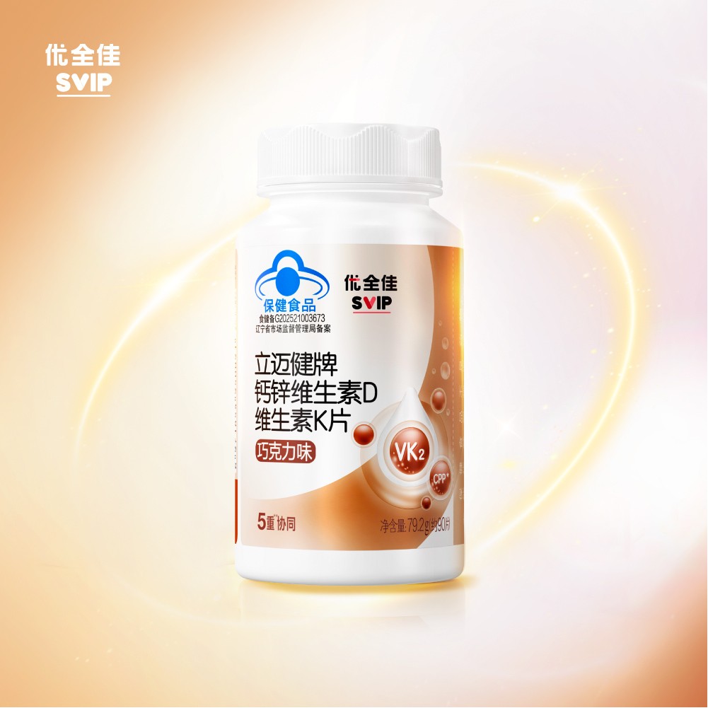 每片含:钙 175mg、锌 3mg、维生素 D3 2.6μg、维生素 K2 10μg、CPP